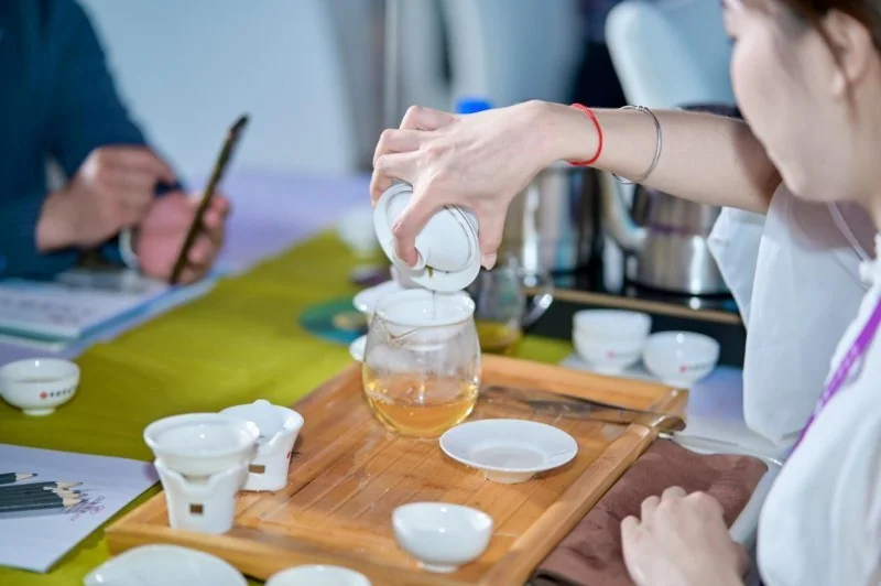 一饱眼福的新品秀结束后,令人期待的一饱口福环节——2024年新品品鉴分享陆续展开。为了给家人们更好的品茶体验,下午的每一款品鉴茶品都是精挑细选后,由行业专家带领品鉴。